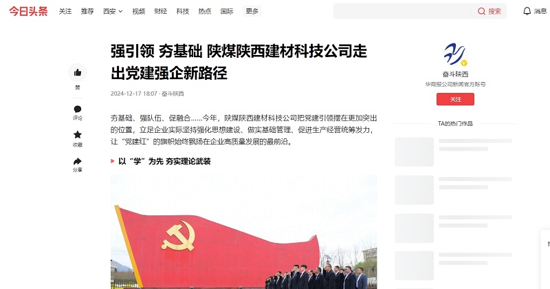 今日头条 | 强引领 夯基础 陕煤陕西建材科技公司走出党建强企新路径