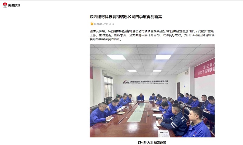 奋进陕煤 | 陕西建材科技赛柯瑞思公司四季度再创新高